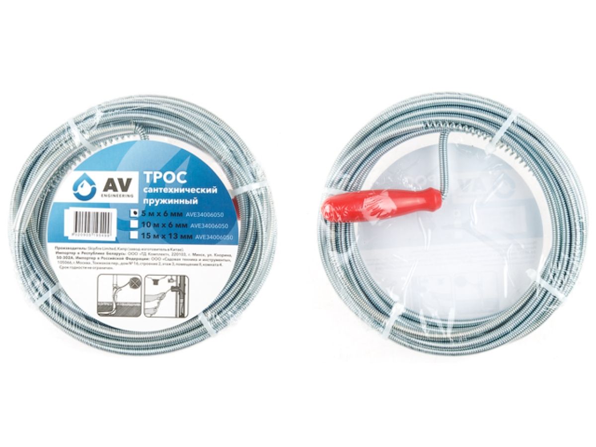 Engineering Трос сантехнический Ø6 мм 5 м ПРУЖИННЫЙ С РУЧКОЙ