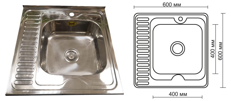 SMS Мойка накладная 60/60 R (т0,8/р180) ПРАВАЯ