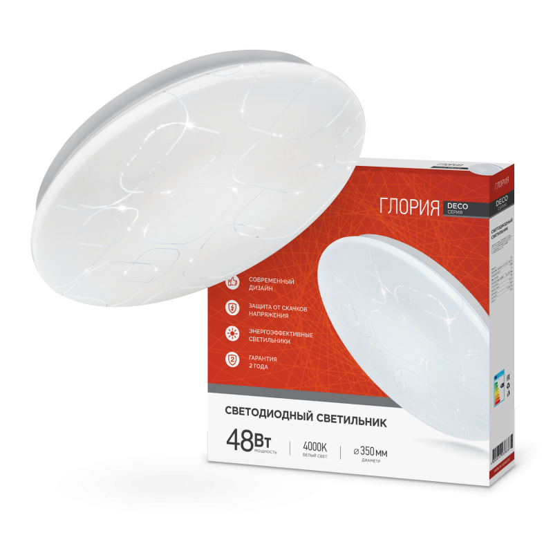 InHome Св-к св/д декор.48W(3120lm) 4000K 350х55 IP40 DECO ГЛОРИЯ