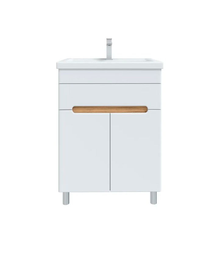 Тумба МОДЕНА 60 БЕЛАЯ/дуб ВОТАН + умывальник ФОСТЕР 60